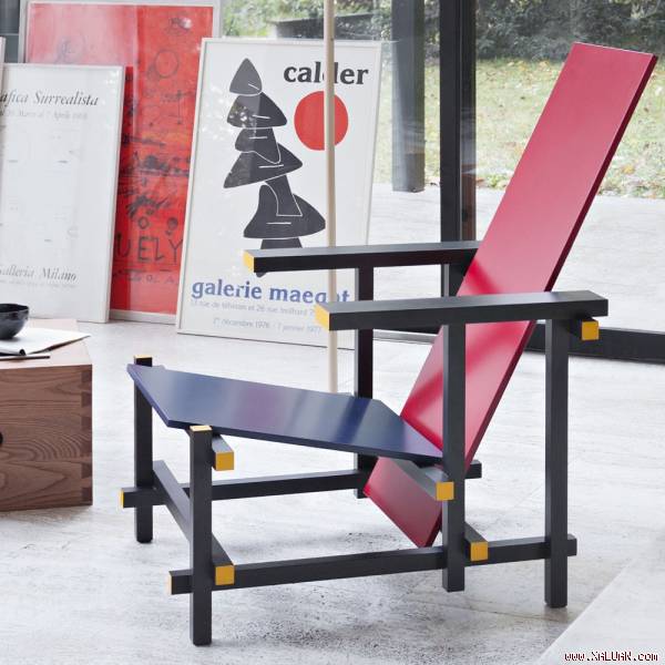 Mẫu ghế xanh dương và đỏ (1918-1921) do kiến trúc sư Gerrit Thomas Rietveld người Hà Lan thiết kế. Ý tưởng này xuất phát từ việc muốn biến một chiếc ghế bành truyền thống thành một thực thể hình học.